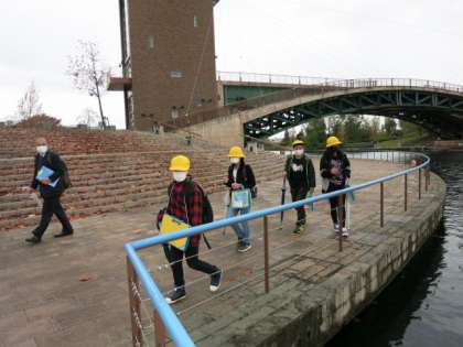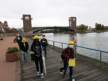 美術館を後にして、環水公園に向かいました。晴れていたのでよかったです。糸電話は使用できませんでした。