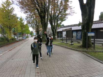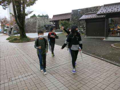 展示物を見た後、城址公園で少し遊んでから、バスへ向かいました。