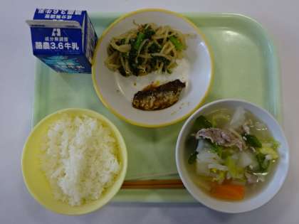 今日の献立は、しおこうじなべ、いわしのとさ煮、おひたし、です。