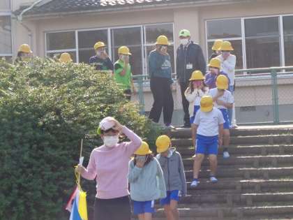 今日の避難訓練は、八尾消防署の消防士の方々や他校の教頭先生に、訓練の様子を見ていただきました。みんな真剣に参加していました。