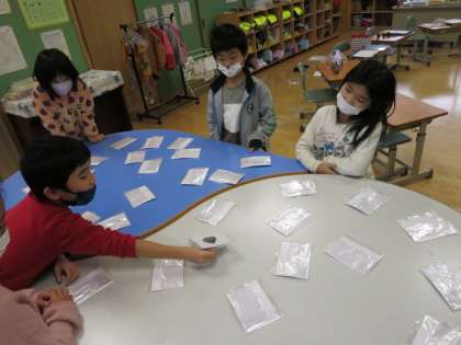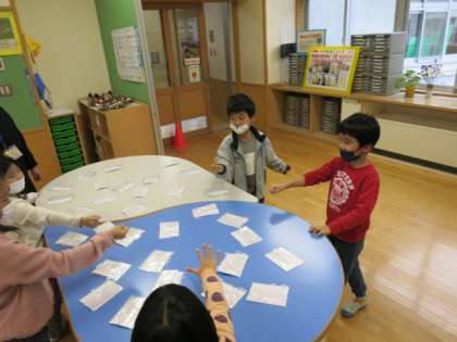 葉っぱを貼り付けたカードで、神経衰弱をしました。