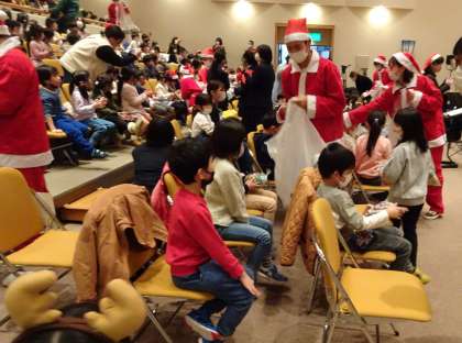 最後にたくさんのサンタさんからプレゼントをいただき、笑顔で会場を後にしました。た。