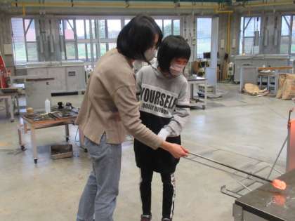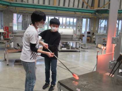 溶けたガラスを扱う時は少し緊張しているようすでしたが、作業を終えた子供たちは仕上がりを楽しみにしていました。