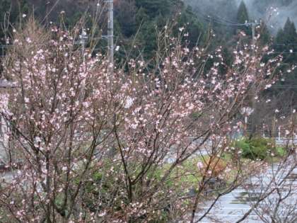 10月半ば頃から、校舎前の桜の木に花がちらほら咲いていましたが、12月になり、花の数が一気に増えました。昨年度は気になりませんでした。