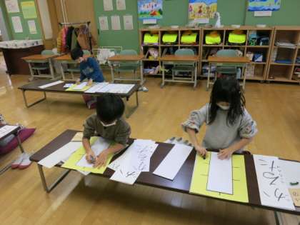 お手本を見ながら、がんばって書いていました。