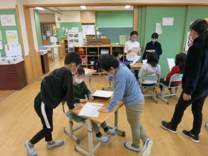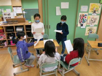 学習の様子4 公開日 2021/12/16 更新日 2021/12/16 学校風景 中学年 総合 先日取り組んだ「たべキリン運動」の結果を発表するための文章を考えたり、発表の練習に取り組んだりしています。
