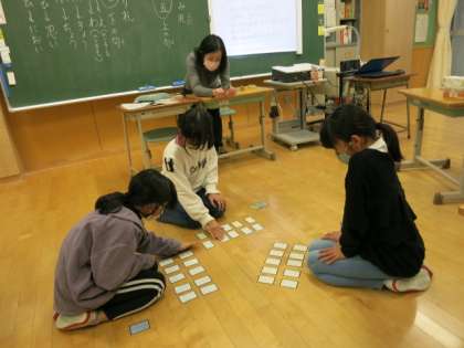 4年生 百人一首に挑戦していました。繰り返しながら、たくさんの歌を覚えるといいね。