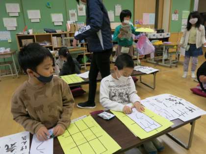 2年生 お楽しみ会で「笑点」をするのかと思っていたら、書き初めの練習でした。 筆圧が、どんどん力強くなっています。