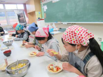 できあがったホットケーキをデザートと一緒にみんなで食べました。楽しい時間を5・6年生全員で過ごすことができました。