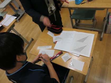 学習の様子2 公開日 2021/12/22 更新日 2021/12/22 学校風景 5年生算数科 台形の面積を求める公式を、作業を通して考えていました。 公式を覚えることよりも、なぜその公式になるかを考えることが大切です。