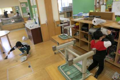 教室を見に行くと、最後の大掃除をしていました。