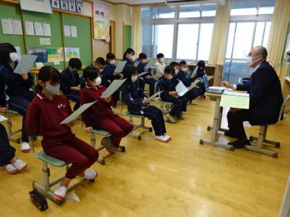 中高学年が集まって、スキー教室の話をしました。しおりを見ながら真剣に話を聞いています。来週19日(水)のスキー教室が楽しみです。