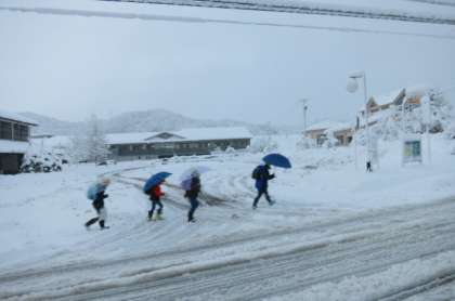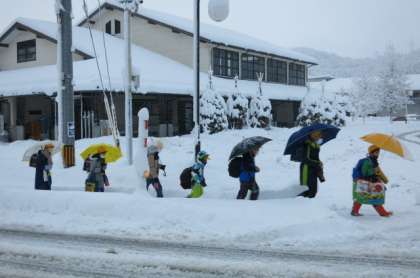 火曜日から3学期が始まり、やっと週末になりました。 雪の中の登校です。 今日は、1・2年生はスケート教室です。