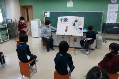 1月17日 パネルシアター 公開日 2022/01/17 更新日 2022/01/17 学校風景 メディア・ブック委員会が、下学年にパネルシアターを行いました。 題名は、「絵ネコとネズミ」です。 おもしろいお話の内容に、みんな見入っていました。