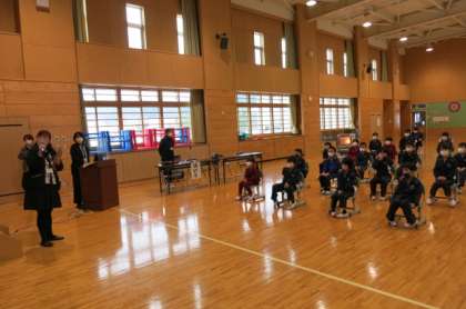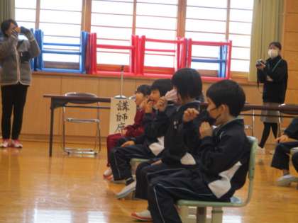 あいうべ体操教室 公開日 2022/01/17 更新日 2022/01/17 学校風景 冨山医療生協の方々をお招きして、「あいうべ体操教室」を行いました。 口の周りの筋肉をきたえることで、鼻呼吸になるようにして、健康な身体づくりを目指すものです。みんな、真剣に話を聴き、「あいうべ体操」に挑戦していました。