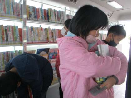 今日は、自動車文庫の日でした。学校に残っていたのが、2学年のみだったので、いつもよりもゆったりと選ぶことができました。