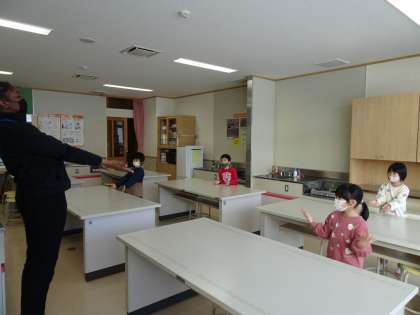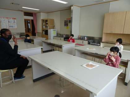 ALTの先生と一緒に英語の学習をしました。歌を歌ったり体を動かしたりしながら、英語に親しみました。
