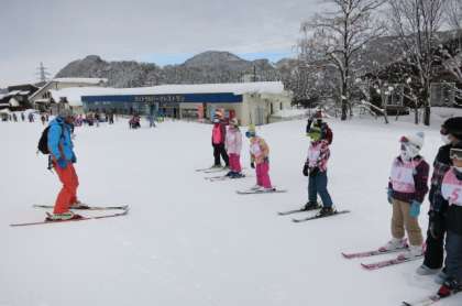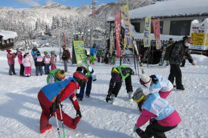 スキー教室 公開日 2022/01/19 更新日 2022/01/19 学校風景 道路が凍結していたために、やや時間がかかりましたが、無事スキー場に到着し、スキー教室を始めました。 まず、グループ毎に準備運動を行いました。