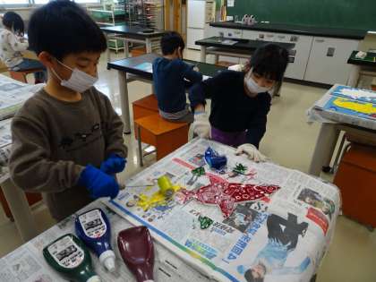 粘土版画に挑戦 1年生
