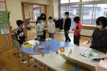 3・4年生総合 公開日 2022/03/14 更新日 2022/03/14 学校風景 準備をしてきた、ごみになるものを再利用したゲームの屋台を開きました。 密にならないよう招待する人を分けています。 今日は高学年が招待され、夢中になって遊んでいました。