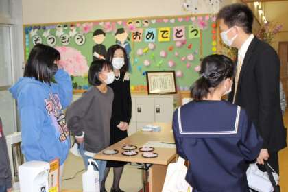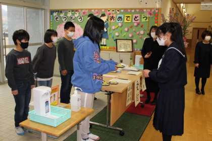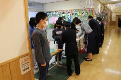 受付 5年生ががんばっています。