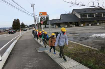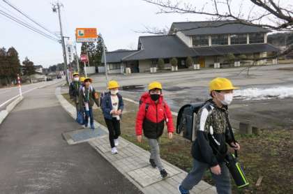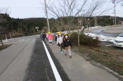 1年生から5年生の新しい班で、登校しています。