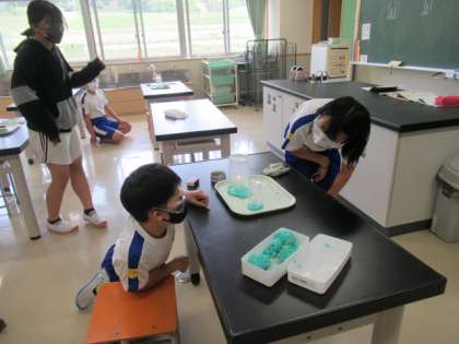 6年生は、理科「ものの燃え方」の学習を行いました。火を付けたろうそくにかぶせるふたの大きさを変えるなど、いろいろ試しました。その中から、「おやっ」「あれっ」がたくさん生まれたようです。