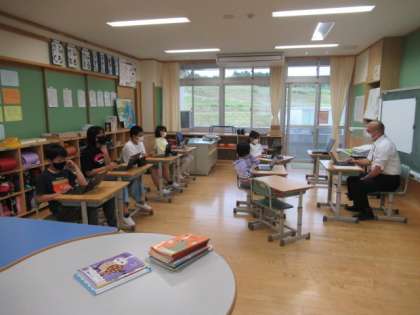 5・6年生は、コンピュータの画面に、「学級の目指す姿」についてそれぞれの思いを書き込みました。画面には書き込んだ人の考えが表れ、集まらなくてもお互いの考えを知ることができます。便利に使っています。