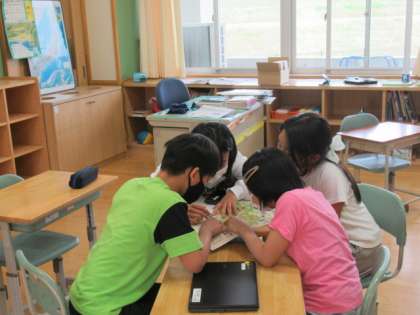 5・6年生は、校内遠足の予定を立てています。訪問先について調べ、どのように過ごせばファミリーが仲良くなれるか考えています。リーダーシップを発揮している高学年に感心します。どんなプランができるかな?