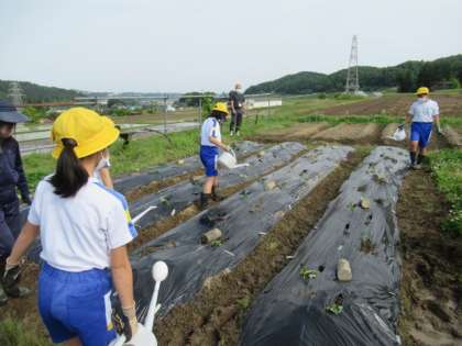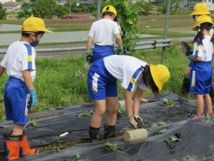 植えた苗は小さいですが、これからたくましく育っていくことでしょう。お世話をがんばっていきましょう。