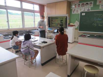 5年生は、ALTと英語に取り組んでいました。外国の人は名前を省略して、いろいろなニックネームをつけているというとても興味深い話を聞きました。