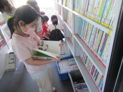 自動車文庫 公開日 2022/05/18 更新日 2022/05/18 学校風景 今日は自動車文庫の日です。子供たちは、読みたい本がたくさんあるようで、迷いながらも5冊を決めていました。ぜひ、たくさん本を読んでください。