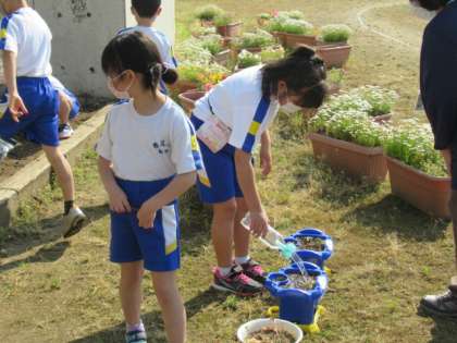 学校でも水やり 公開日 2022/05/19 更新日 2022/05/19 学校風景 学校でも、水やりを行っています。アサガオや枝豆から芽が出ており、子供たちはとてもうれしそうです。生命のすばらしさを感じます。