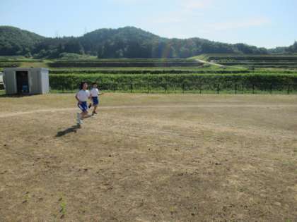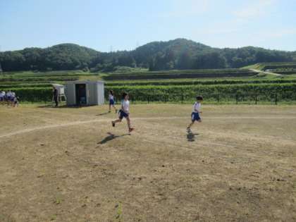 朝のトレーニングを全校でおこなっていますが、やはり高学年の走りは、下級生の手本になります。高学年の子供たちは、「手をあげる」「リズムよく走る」など、基本的なフォームが身に付きつつあります。このような姿を参考にしながら、子供たちはがんばっています。