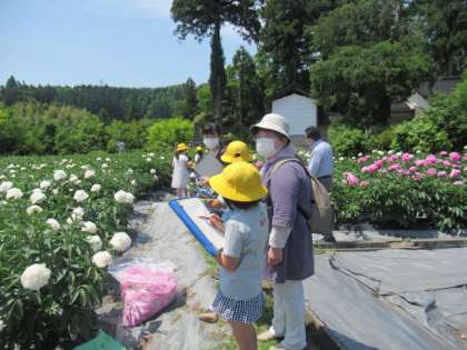 樫尾のお宝発見1 公開日 2022/05/24 更新日 2022/05/24 学校風景 3・4年生の総合的な学習の時間に、樫尾で栽培されているシャクヤクの花畑へ見学に行ってきました。見事なシャクヤクが咲いており、子供たちは樫尾のすばらしいところを発見したことでしょう。