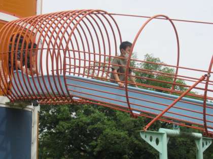 赤ファミリーは、わんぱくの丘へ行きました。わんぱくの丘で、いろいろなアスレチックを楽しみました。
