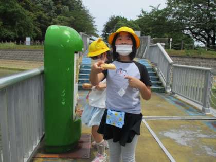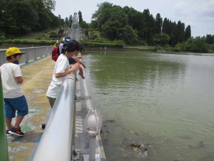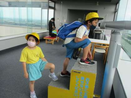 白ファミリ−は、鯉のえさやりを行い、展望塔に登りました。