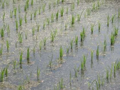 学校田の苗がしっかりとしてきました。少し伸びたようにも見えます。