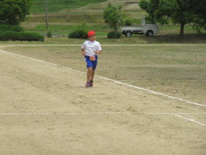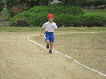 1〜3年生の体育では、100メートル走に挑戦。来週の100メートル記録会に向けてがんばっています。