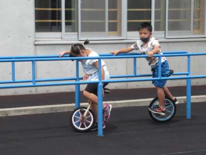 チャレンジ 公開日 2022/06/02 更新日 2022/06/02 2年生 ぐんぐん広場では、子供たちがうんていや一輪車にチャレンジする姿が見られます。なかなかうまくいかなくても、何回も取り組んでいる姿がすばらしいです。きっとうまくいく時がくるでしょう。
