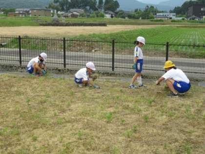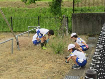 グラウンドの草取り 公開日 2022/06/03 更新日 2022/06/03 学校風景 グラウンドの草が伸びてきたので、草取りを行いました。先頭に立って一生懸命取り組む高学年の子供たちの姿を見て、下級生もいっしょに取り組んでいます。黙々と草取りを行う子供たちに感心しました。楽しいことも、大変なことも、全校一緒に取り組めるのが本校のよいところです。草取りが終わった後、グラウンドがすっきりとしました。みなさん、ありがとう。
