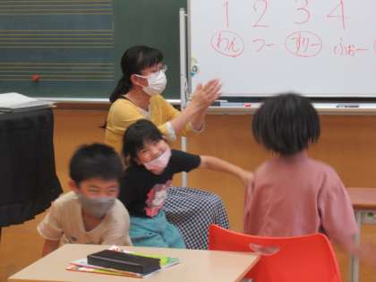 音遊びで楽しく 公開日 2022/06/06 更新日 2022/06/06 2年生 1・2年生の音楽の授業では、とても楽しそうな様子が見られました。音楽に合わせて、手でリズムをとっていました。わっと盛り上がる場面があり、音遊びを楽しんでいました。