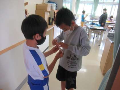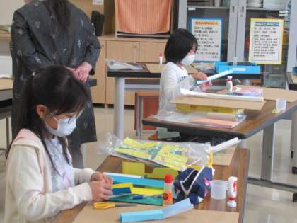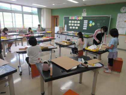 コロコロガーレ 公開日 2022/06/06 更新日 2022/06/06 4年生 3・4年生図工「コロコロガーレ」の学習では、コース作りを行いました。子供たちは、カーブがきれいになるように丁寧に切り込みを入れたり、コースの壁ができるように厚紙を慎重に折り曲げたりと、熱心に活動しました。セロハンテープは、どうしても必要なときだけ、とできばえの美しさも考えて取り組みました。