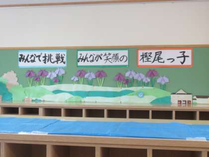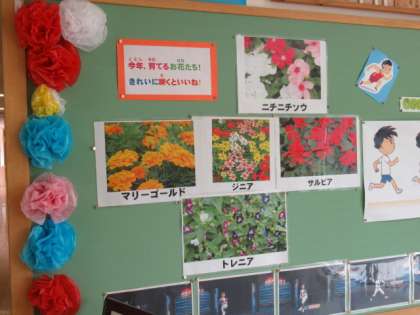 子供たちが学校へ来たとき、明るい気持ちになるよう、掲示も工夫しています。さあ、今日も一日がんばろう!