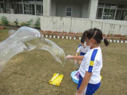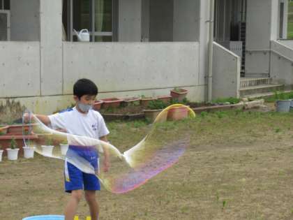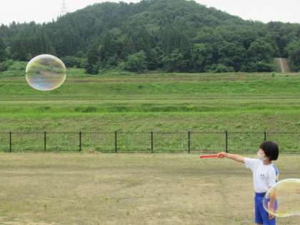 ふわふわ浮かんでいるシャボン玉、子供たちの夢をいっぱい乗せているようです。
