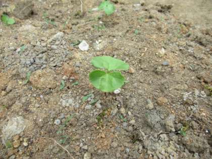 3年生がまいた和綿の種から芽が出ました。これからどのように育つでしょうか。楽しみです。