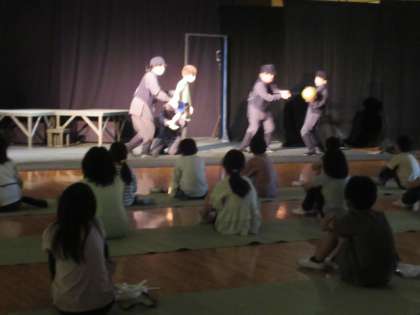 人形劇団むすび座のみなさんによる「かくれ山の大冒険」を鑑賞しました。「弱ッチしか掴めない勝利」が主題で、とてもおもしろい人形劇でした。