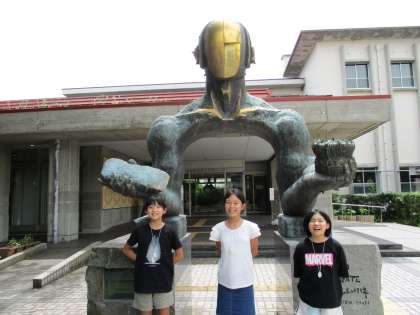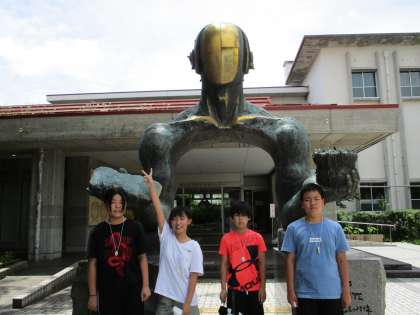勾玉を首飾りにして、みんなで記念写真です。