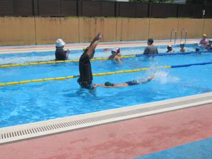 壁をしっかりとけろう 公開日 2022/06/29 更新日 2022/06/29 学校風景 今日は、全校でプール学習を行いました。 バタ足を練習しているグループでは、プールの壁をける練習も行っていました。何回も行うことで、上達しています。