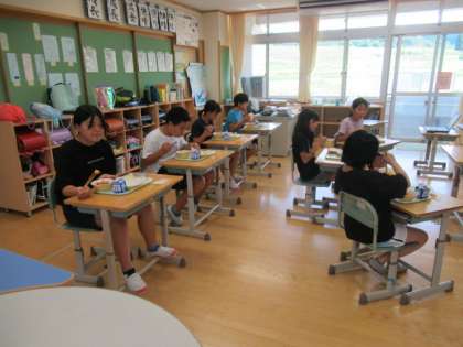 高学年の給食の様子です。みんなでわきあいあいと、楽しそうにいただいていました。